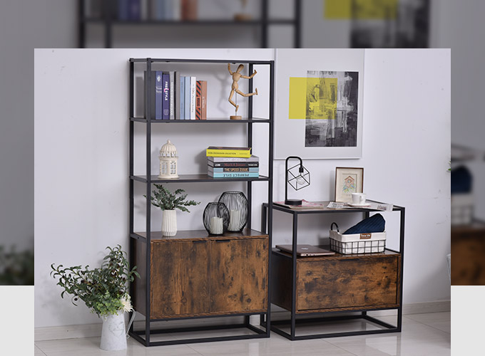 HOMCOM Bibliothèque Style Industriel 3 étagères + Placard 2 Portes Panneaux Particules Aspect Vieux Bois métal Noir