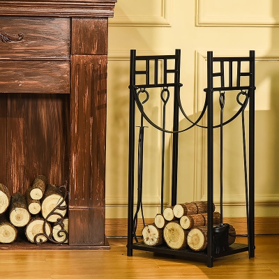 HOMCOM Porte bûches - Range bûches Serviteur de cheminée Arbre - Multi Accessoires étagère 46L x 29l x 70H cm Acier Noir